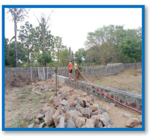Hard rock random rubble masonry compound wall construction work involves building sturdy and aesthetically pleasing boundary walls using irregularly shaped and sized hard rock stones. This traditional method requires skilled masons who carefully select and fit each stone together without a uniform pattern, creating a rugged and natural appearance. The process begins with laying a strong foundation to support the wall's weight, followed by stacking the hard rock stones with precision, filling gaps with smaller stones or mortar to ensure stability and durability. Mortar, usually a mixture of cement, sand, and water, is used to bond the stones together, enhancing the wall's strength. This type of masonry is not only durable and resistant to harsh weather conditions but also offers a visually appealing, rustic look that blends seamlessly with natural surroundings. Hard rock random rubble masonry is often employed in constructing boundary walls for estates, parks, and rural properties, providing both security and aesthetic value.
